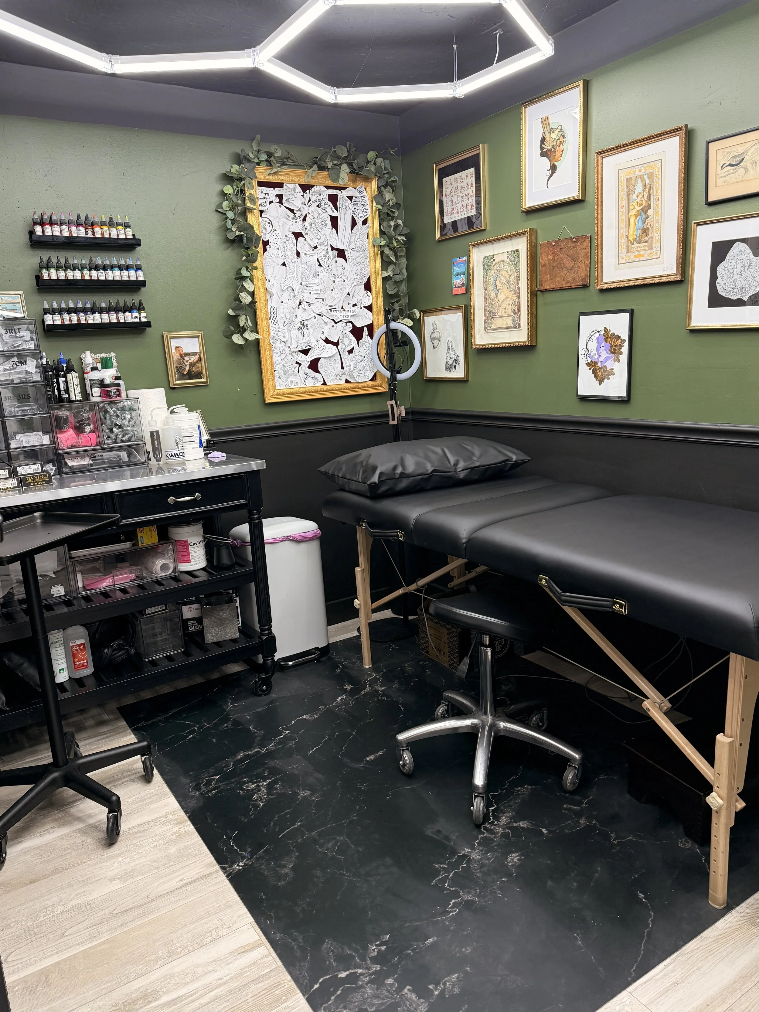 We’re a group of all female artists, and our studio has a bright, cozy & funky vibe! We are generally appointment only, but we do host occasional flash events and walk-in days - check out the shop Instagram for our next event!